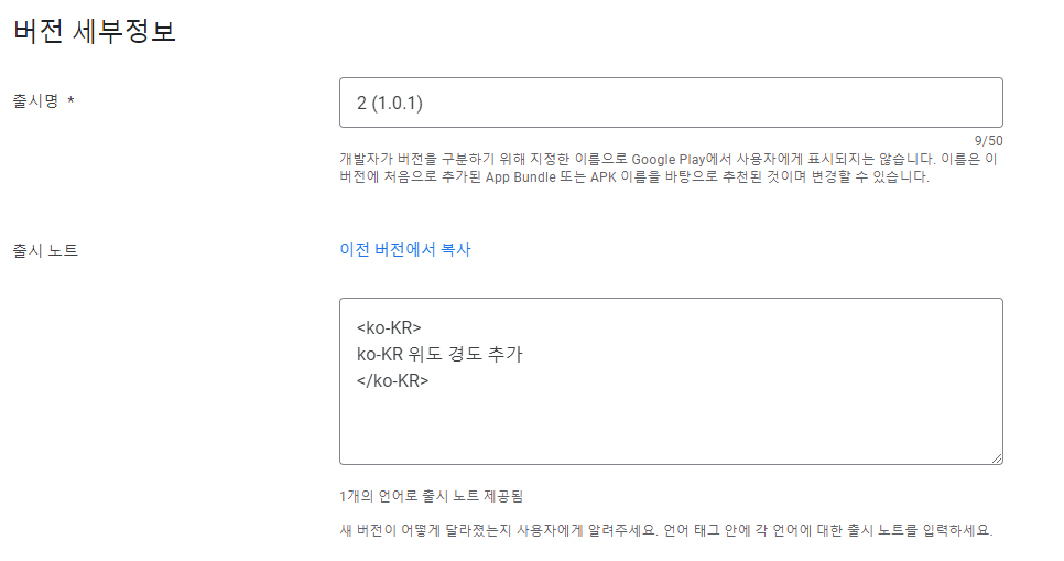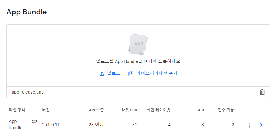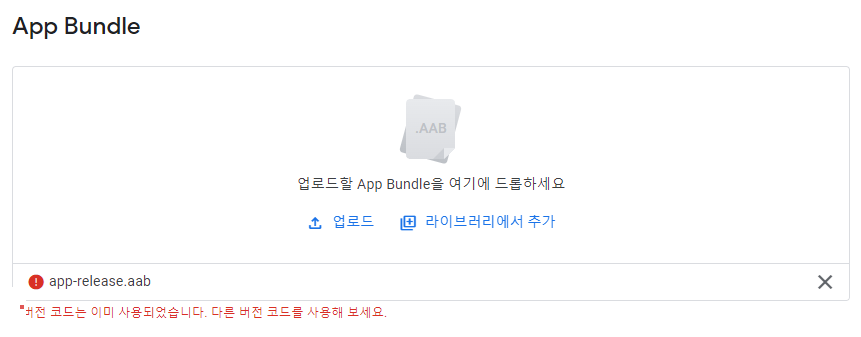 버전 내용 수정없이 .aab 파일을 업로드 하면 google play console에서